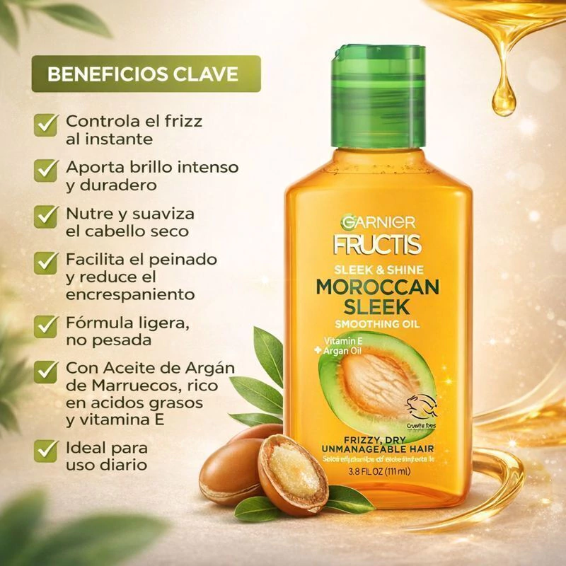 💡 Tip: Para mejores resultados, úsalo junto a la crema para peinar y otros productos de la línea Garnier Fructis Sleek & Shine ✨